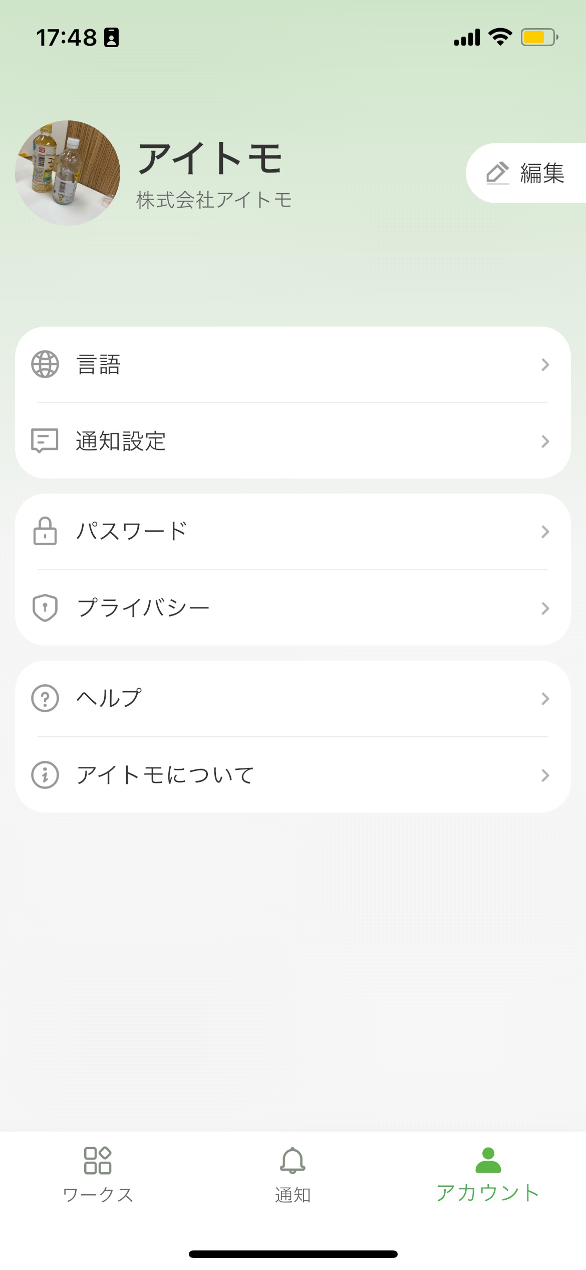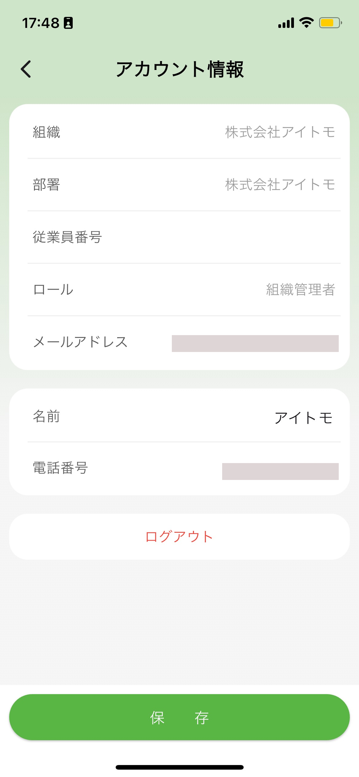 アカウント設定画面では、ユーザー自身の登録情報を編集することができます。