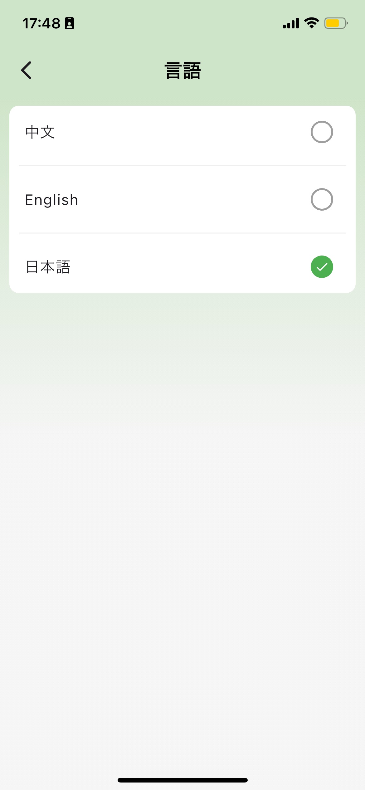 アプリで使用する言語を選択できます。現在サポートされている言語は次の3種類です:中国語、英語、日本語。