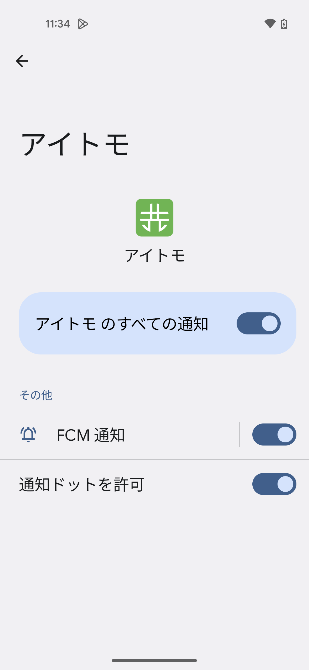 特に iPhone や Android 端末では、端末の設定から「アイトモ」アプリに対する通知許可を個別にON/OFFできます。