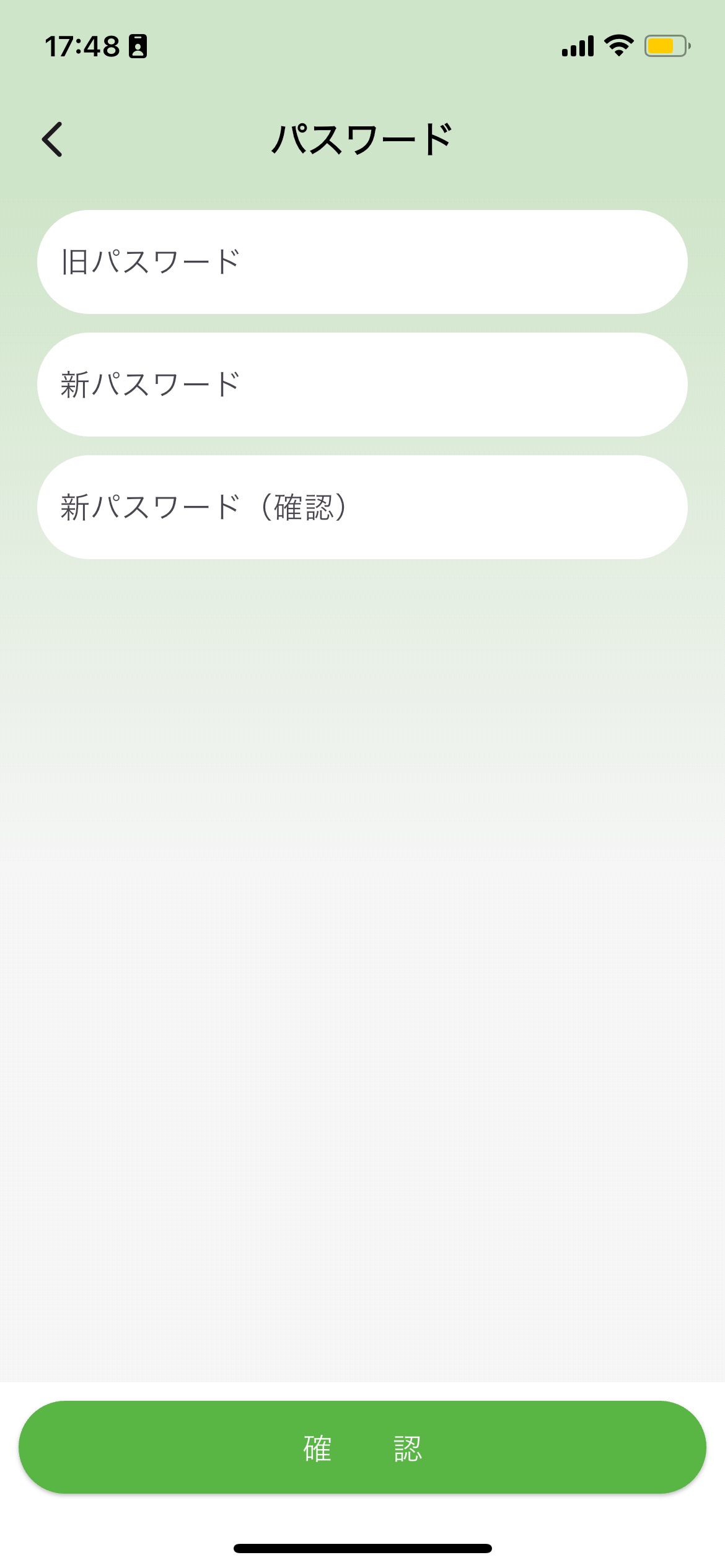 パスワードの変更は下記画面3項目全てに入力し、「確認」をタップして実行します。