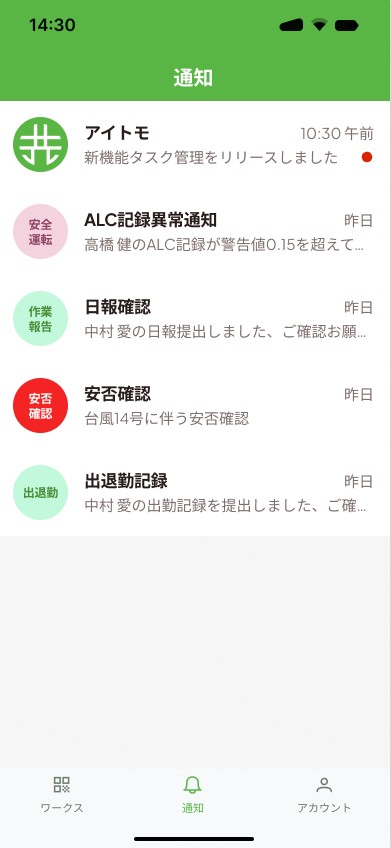 安否確認の通知を受け取るためには、アプリの通知設定を有効にしてください。 設定方法は「通知設定」を参照してください。