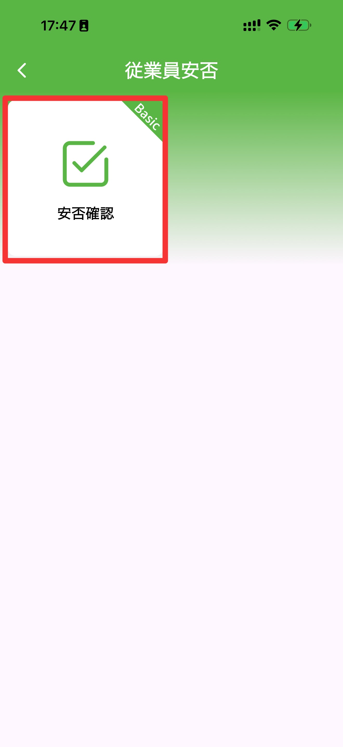 安否確認一覧画面では、管理者から配信された安否確認が表示されます。
