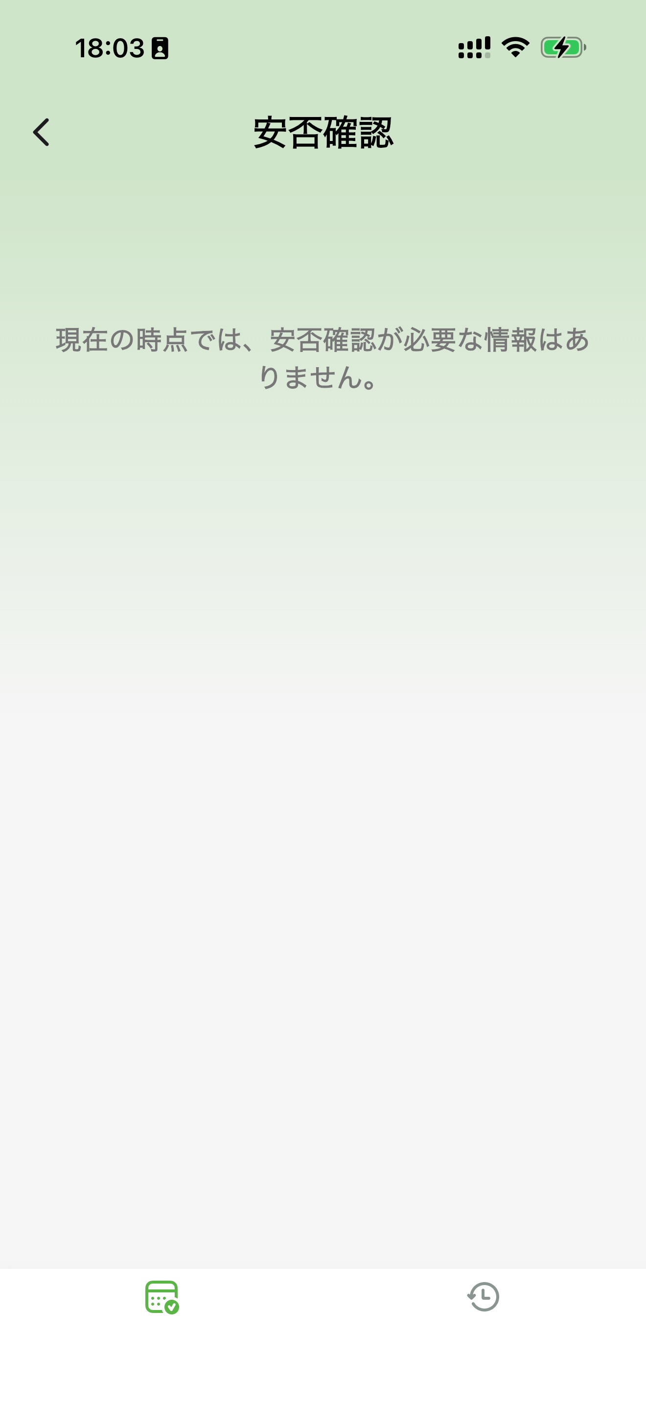すべての安否確認に回答すると、安否確認画面に「現在の時点では、安否確認が必要な情報はありません。」と表示されます。