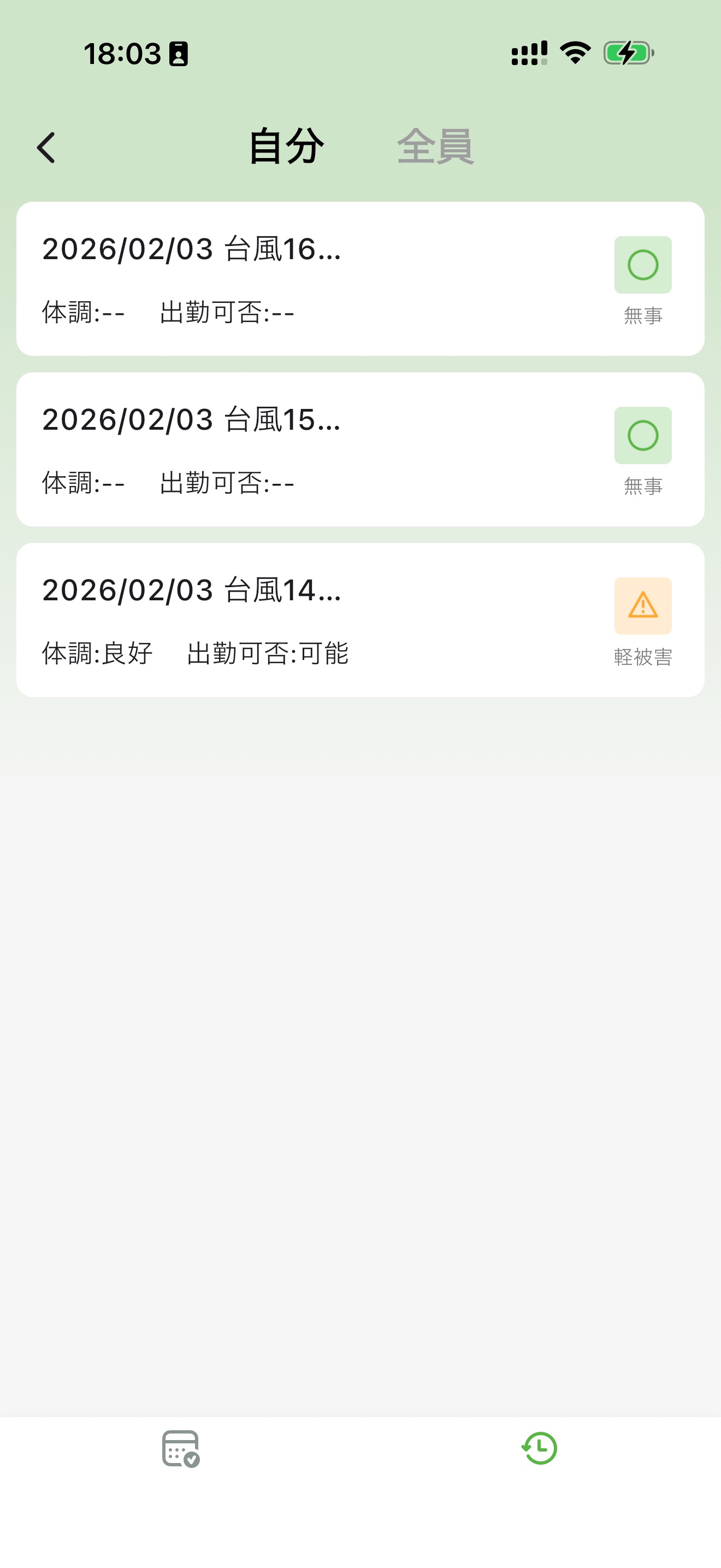- 体調:回答した体調状況(良好、不調、--:未選択)