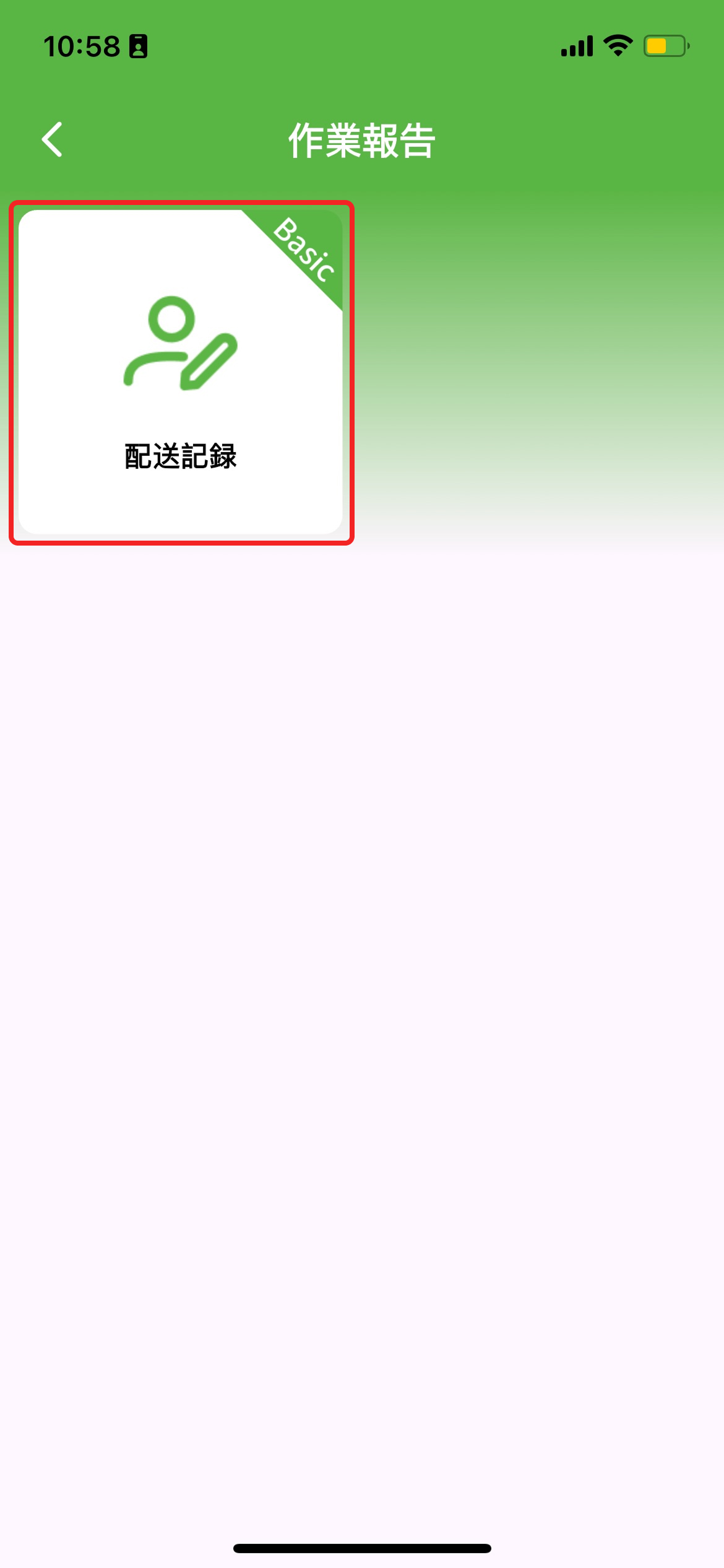 - 作業報告画面(右図)で「配送記録」をタップ