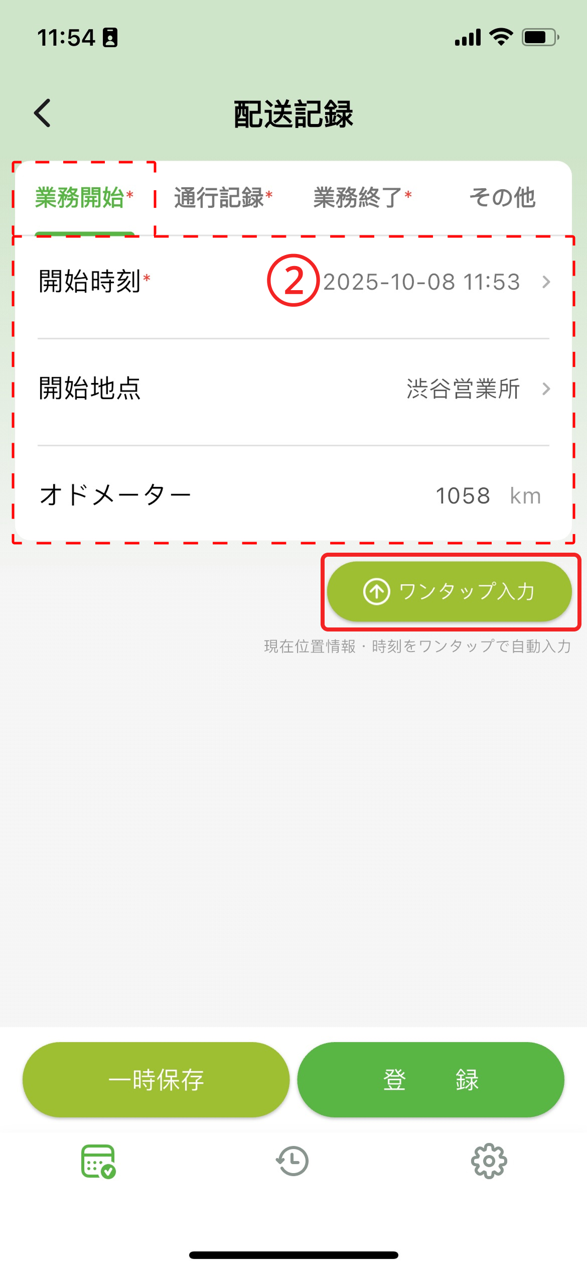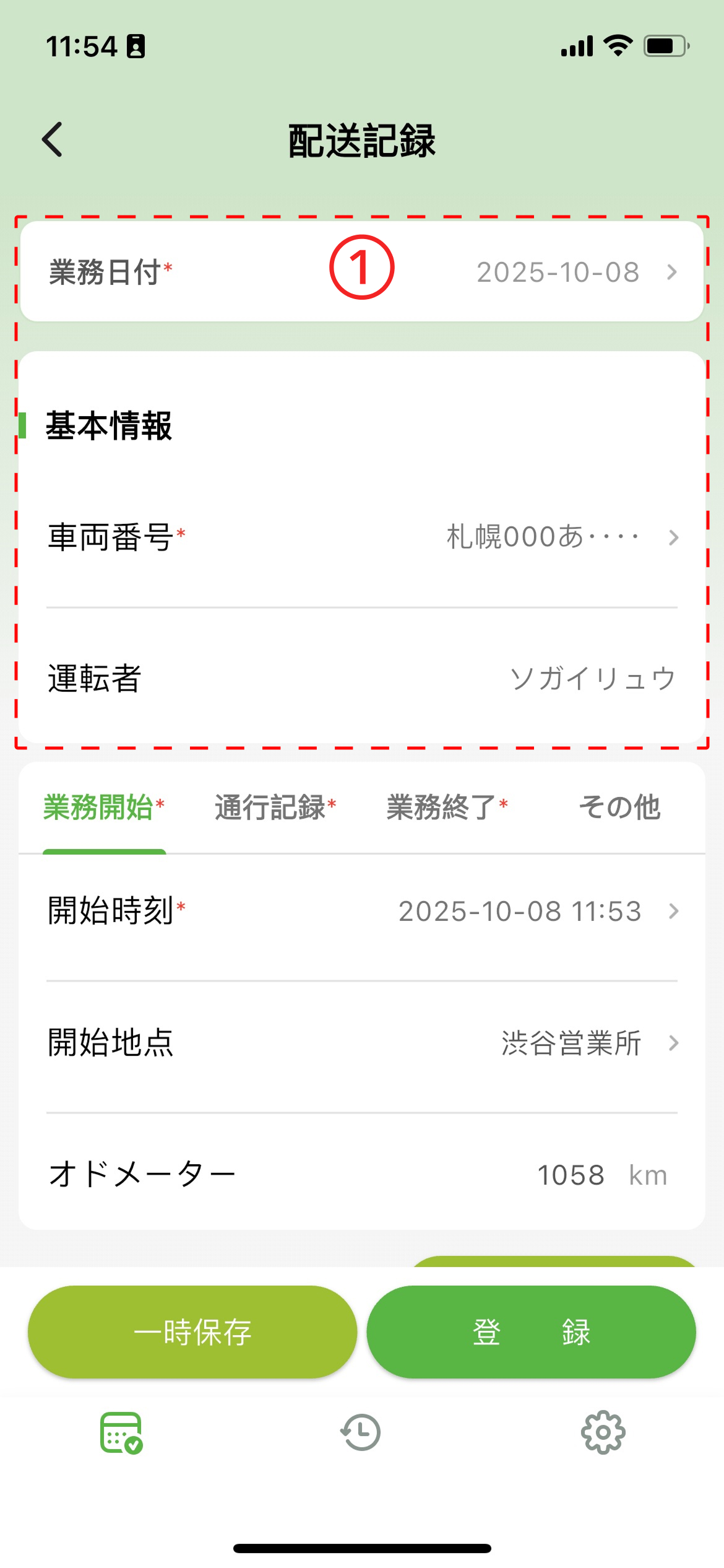 - オドメーター :業務開始時のオドメーターを入力