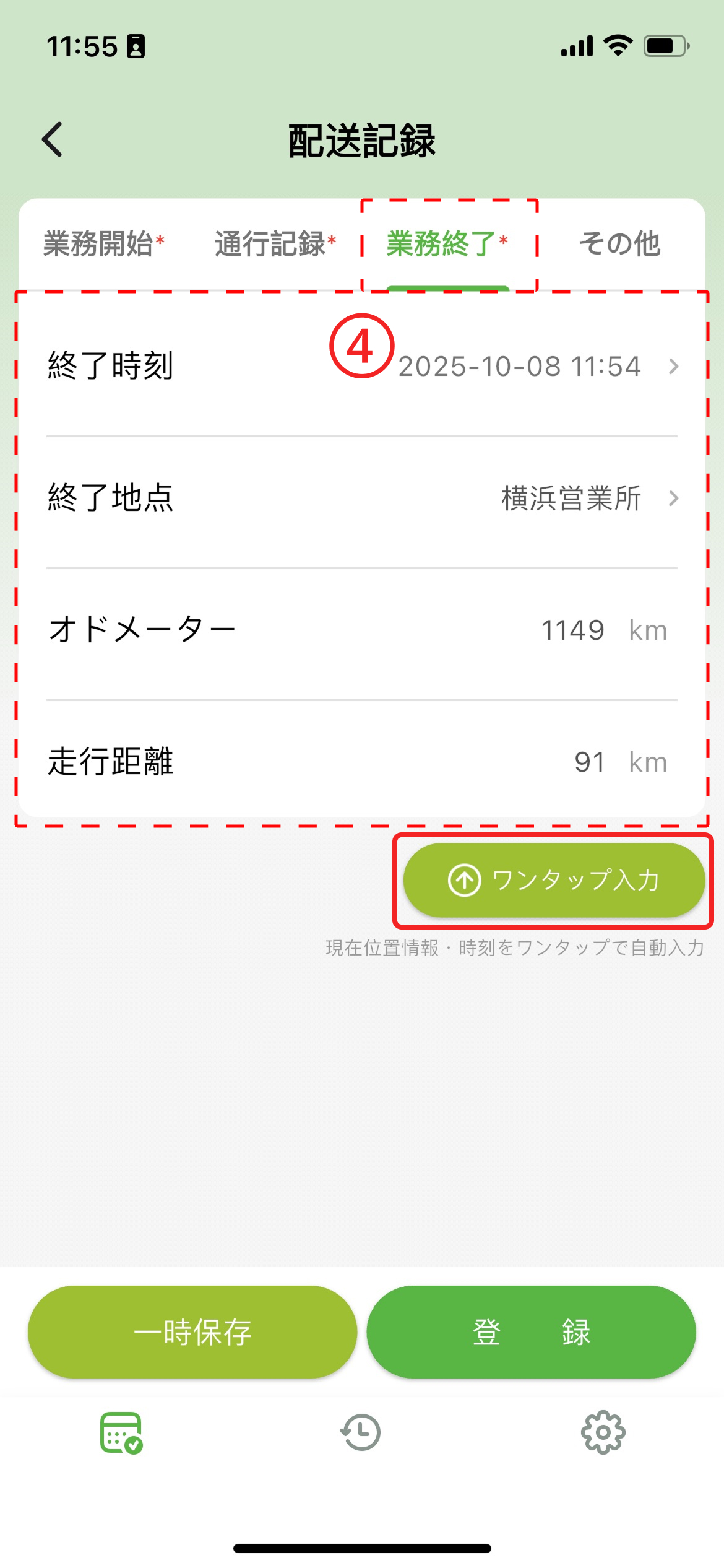 - オドメーター :業務終了時のオドメーターを入力