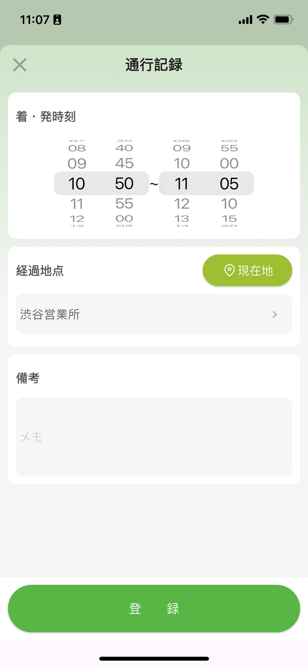 - ワンタップボタン:現在位置情報・時刻をワンタップで自動入力