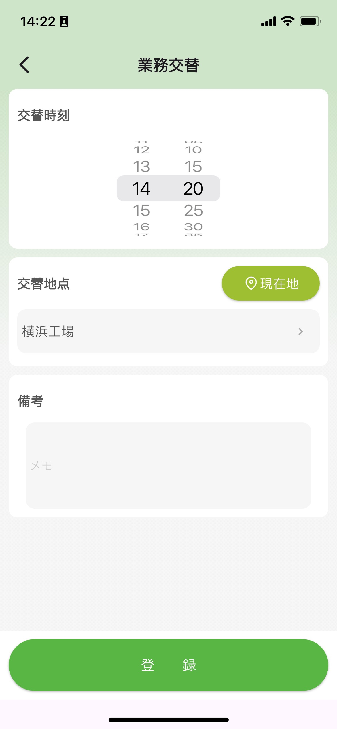 - 交替地点:業務交替地点を選択