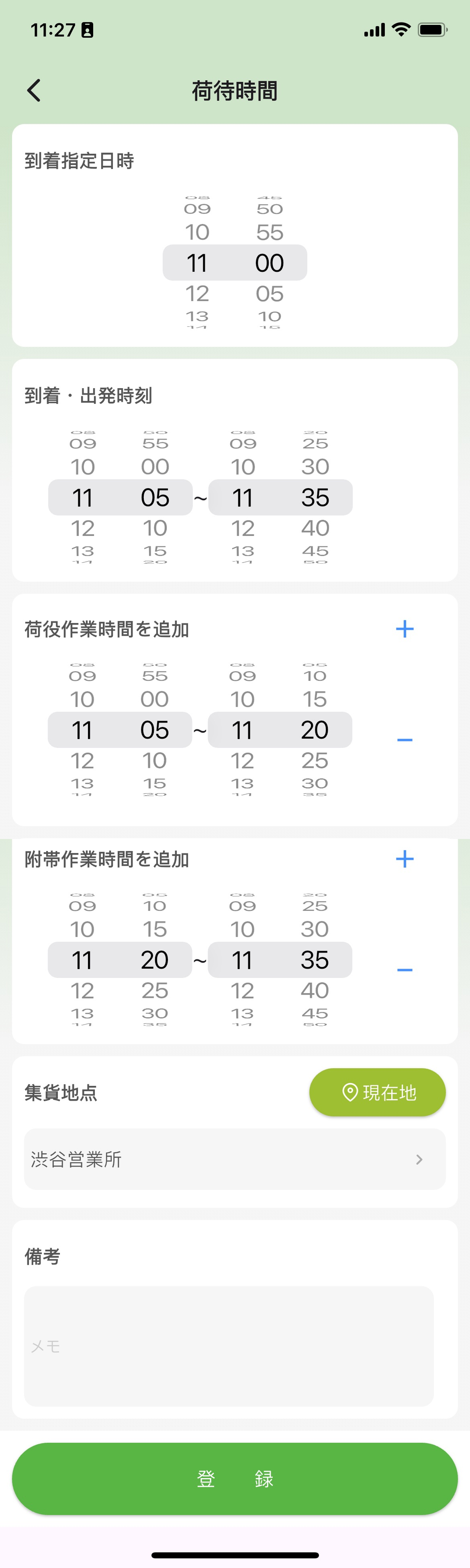 - 備考:今回の荷待時間の備考を入力