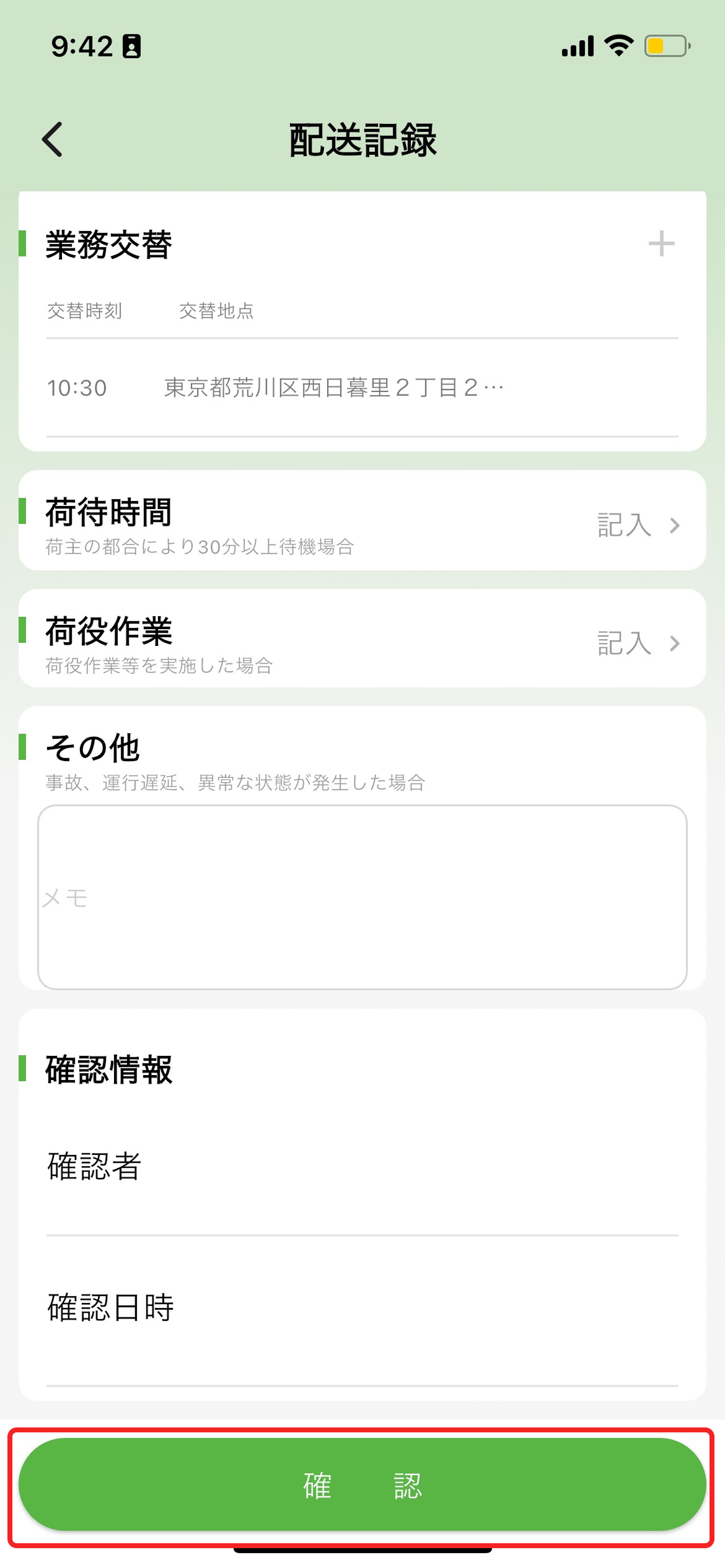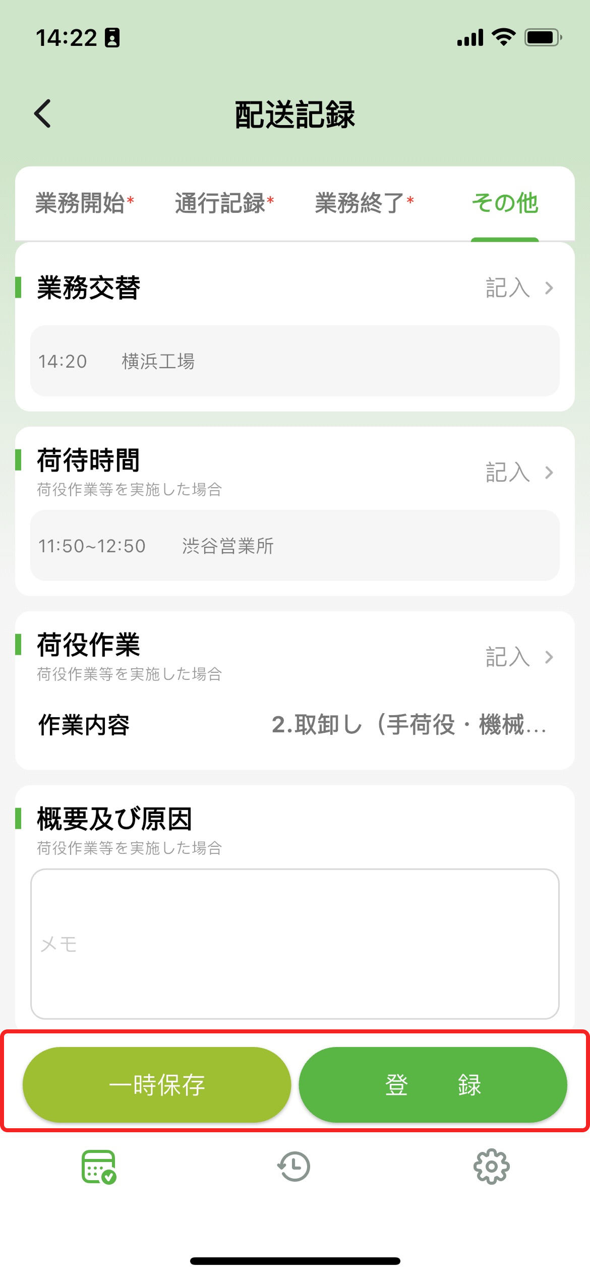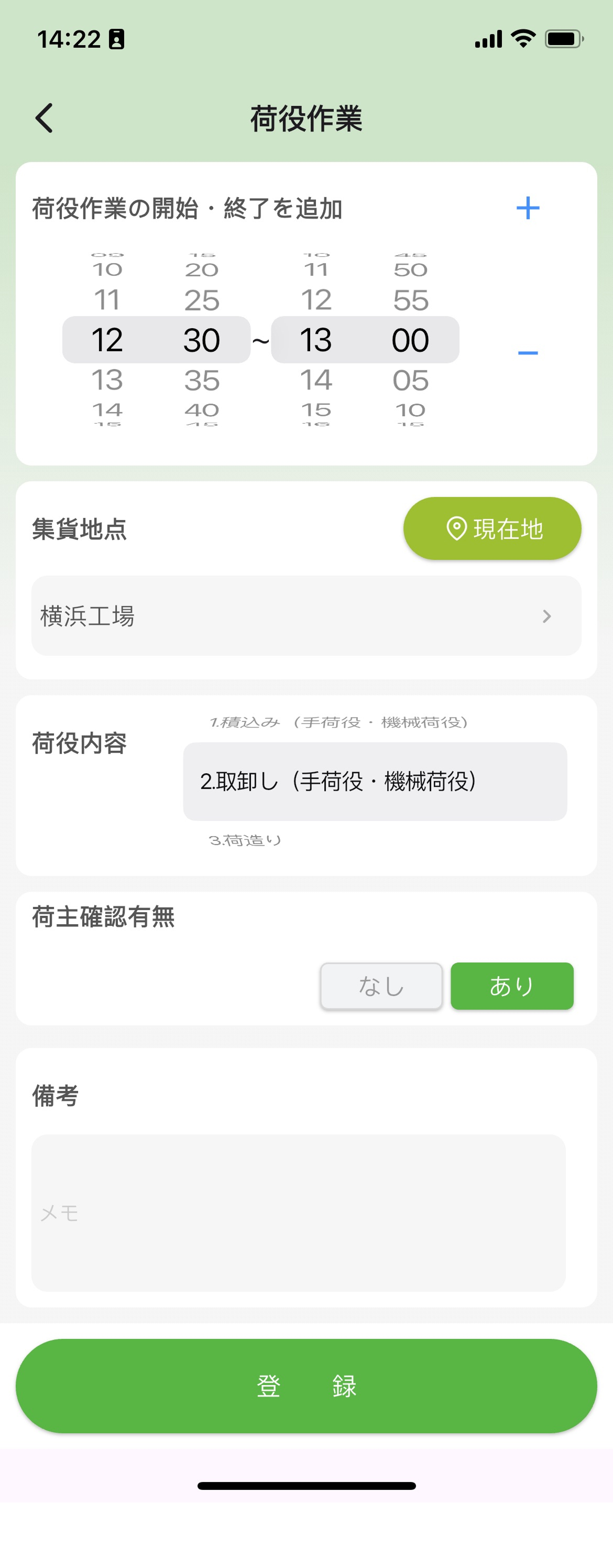 - 備考:今回の荷役作業の備考を入力