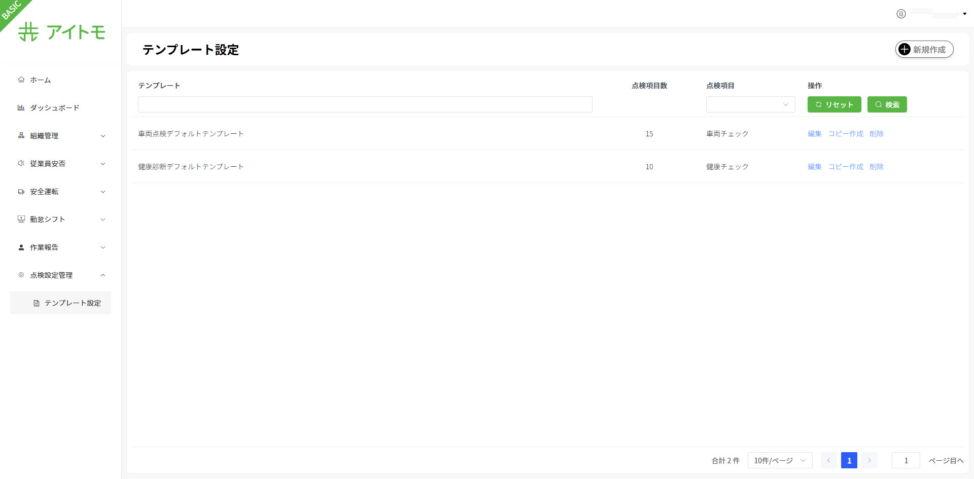 点検テンプレート管理画面